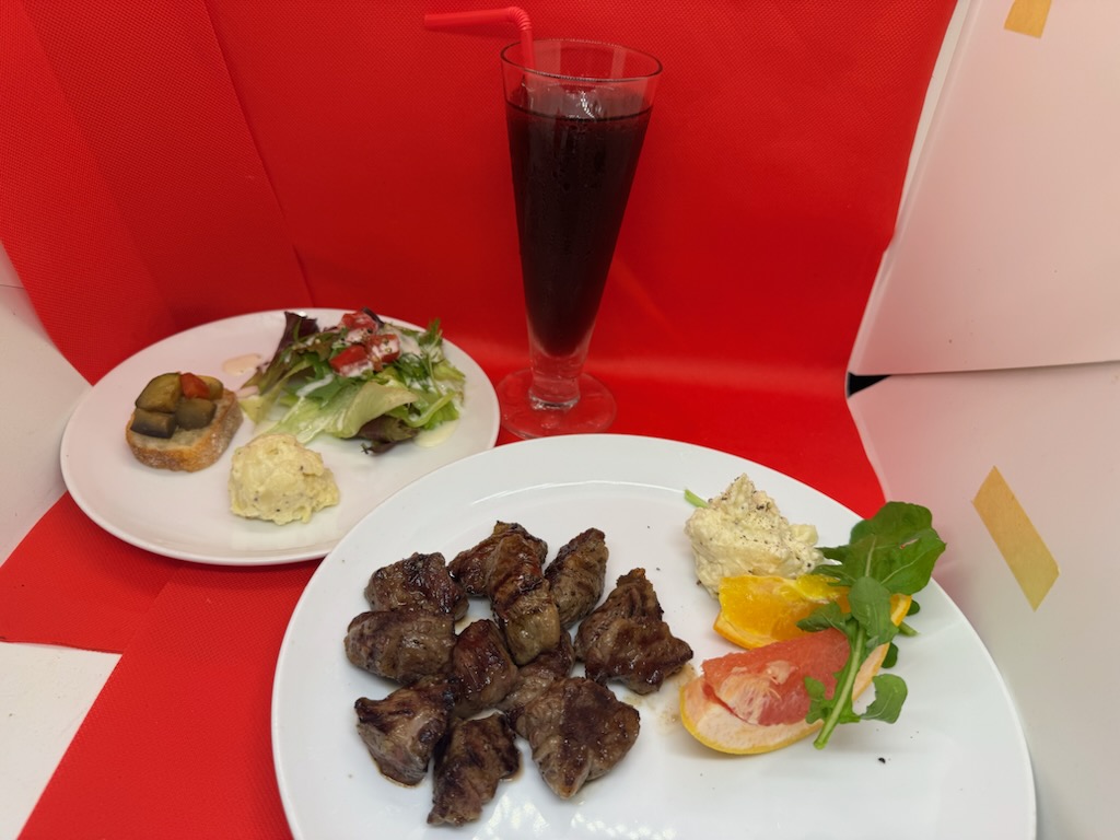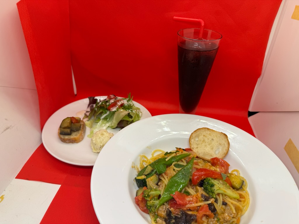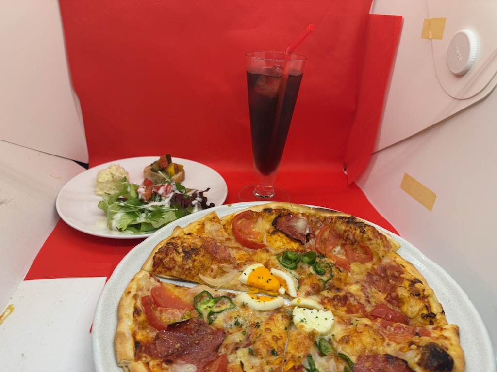 ・ピザやパスタなどの一品料理にはミニサラダプレートが付きます。